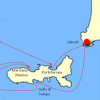 Von Salivoli an der toskanischen Küste geht es vorbei an der Südküste Elbas, nach Bastia an der Ostküste Korsikas, nach Capraia und Portoferraio.