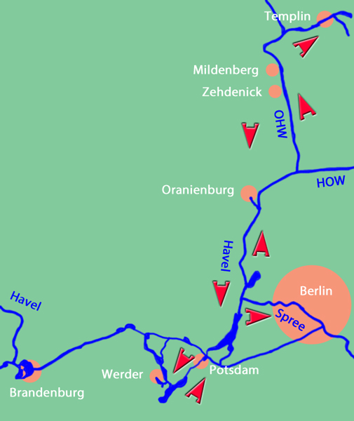 | 1055 Wenden vor Schleuse Mühlendamm 1150 Charlottenburger Kanal 1225 Schleuse Plötzensee 1405 Einfahrt Havelkanal (HvK) 1545 Oranienburger Havel |